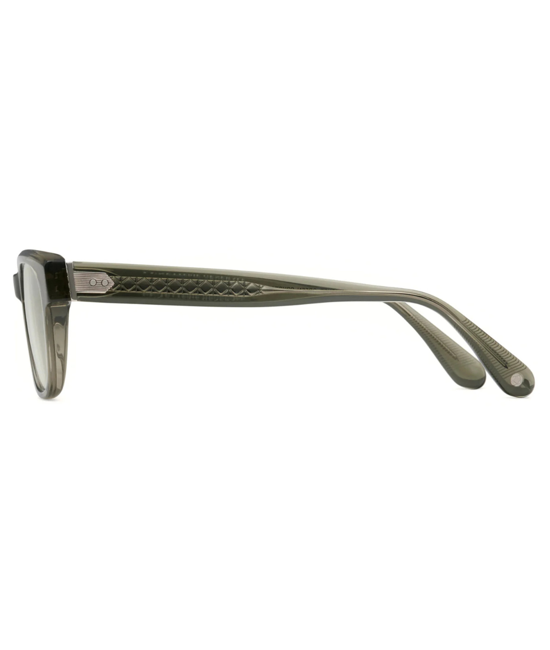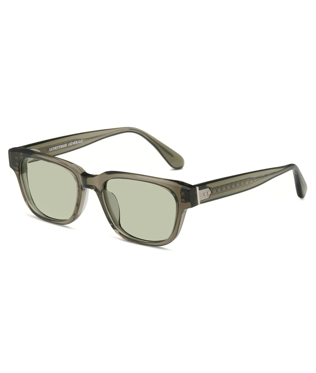 The Lunetterie Générale // Aesthete is a lightly sculpted square Japanese acetate frame with anti-slip grip thin temples. Other details include 7-barrel custom riveted hinges with hair details and a signature engraved wire core. The sun lenses offer 100% UV protection and a backside anti-reflective treatment. Handmade in Japan. Includes Lunetterie Générale box, case, and cleaning cloth.